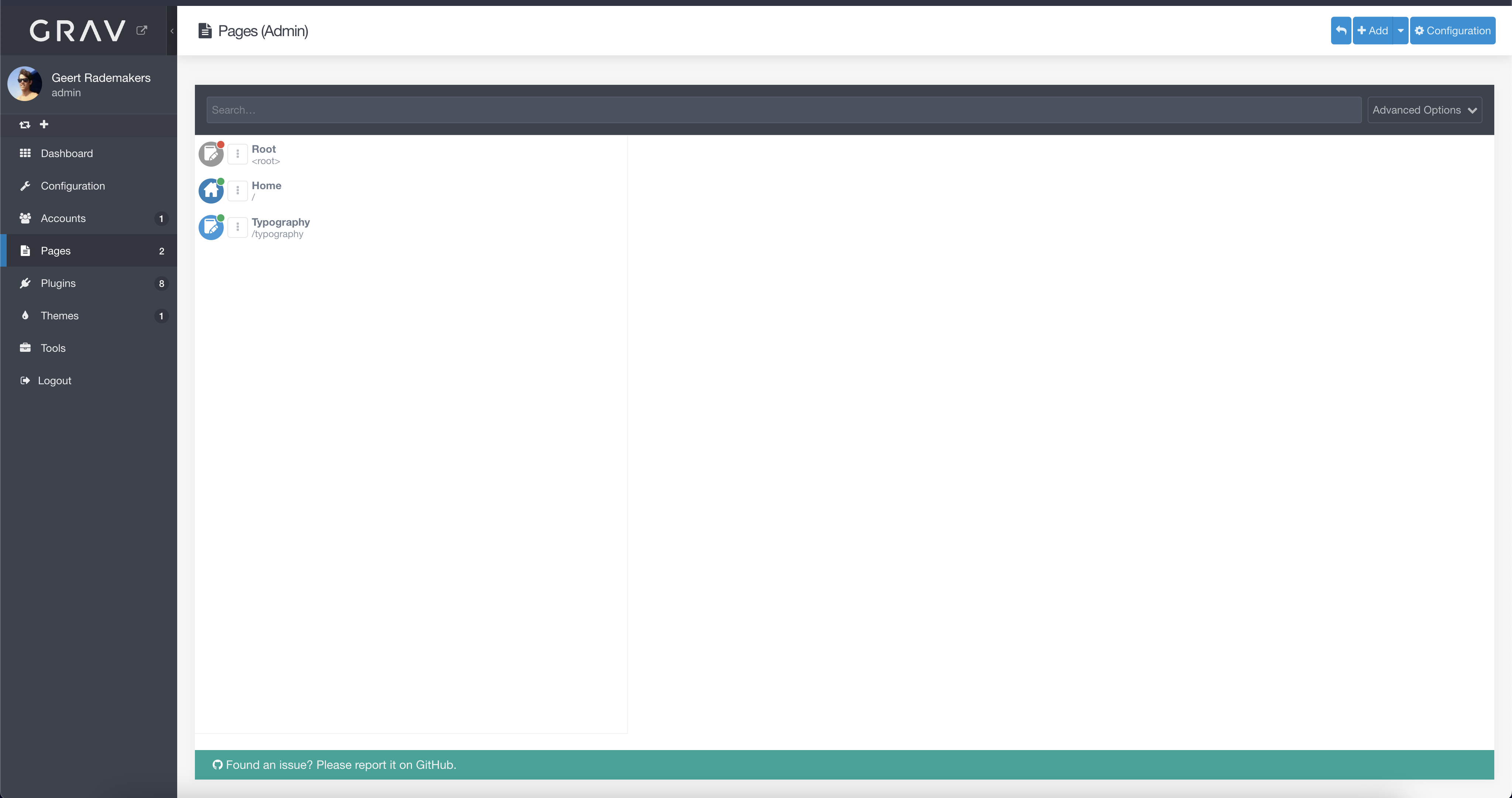 After saving you will be able to see your page in the 'Pages' tab in the side menu. And, if published, under the url that you have given as folder name.