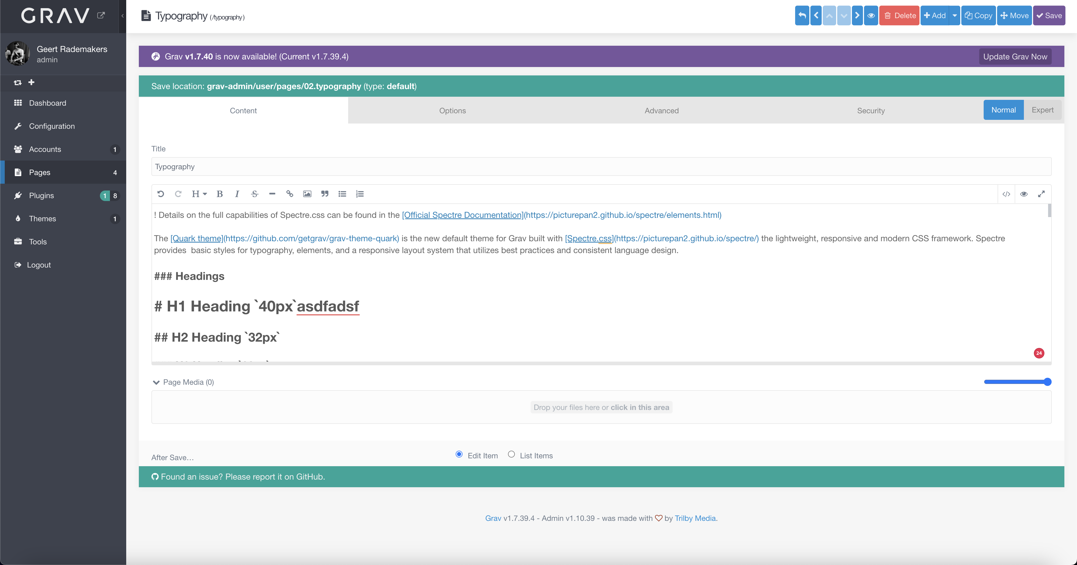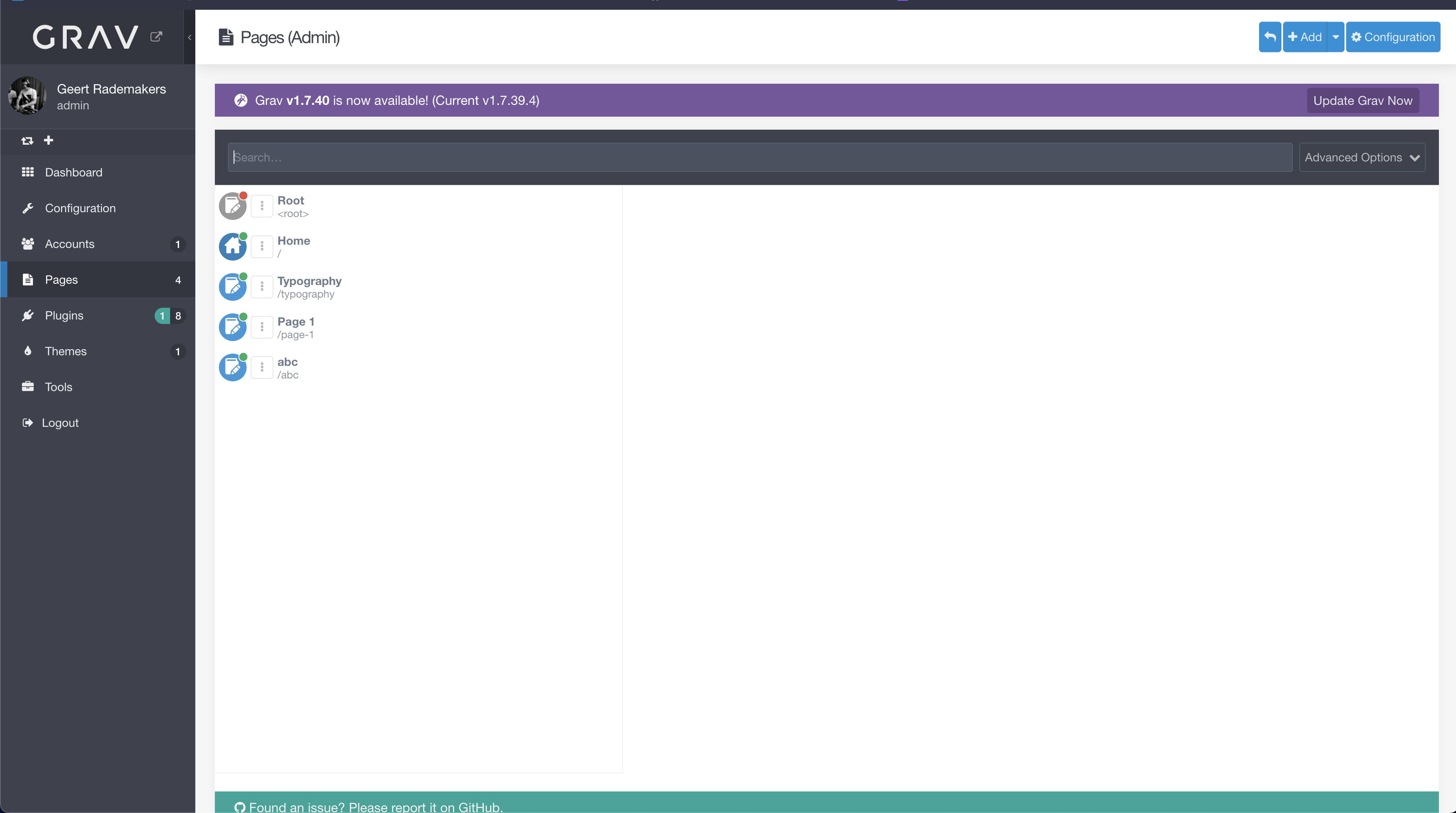 To manage an existing page, go to the 'Pages' tab in the left-hand menu. After that, select the page you want to edit, from the selection shown below (figure 1). If the page you want to edit is in a folder or submenu, be sure to open that folder first and then select the desired page.